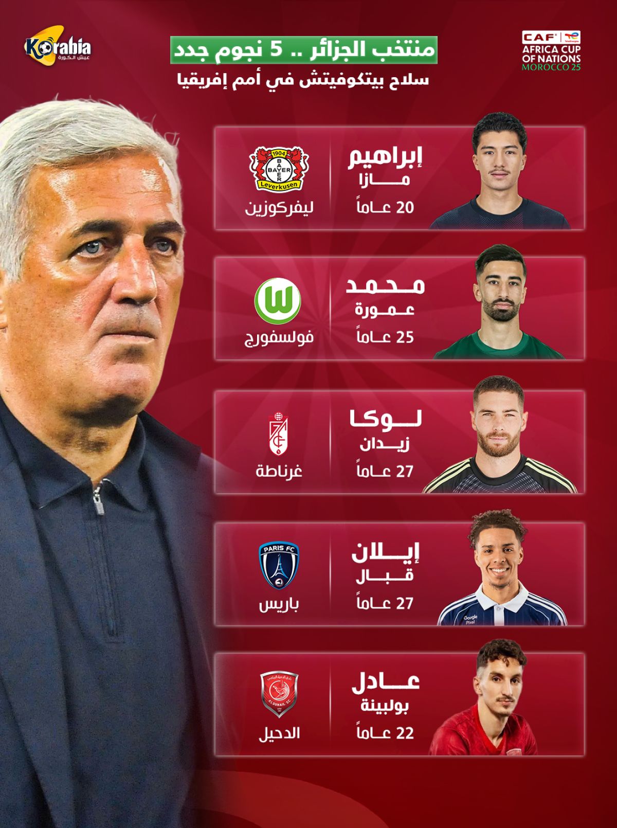 ويملك منتخب الجزائر 5 نجوم واعدة هي أمل المحاربين في المنافسة على لقب بطل كأس الأمم الإفريقية 2025.