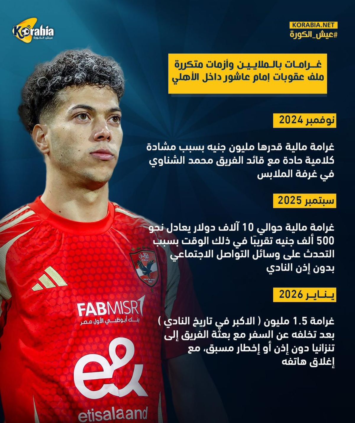 بدأت سلسلة العقوبات في نوفمبر 2024، عندما تم توقيع غرامة مالية قدرها مليون جنيه، عقب مشادة كلامية حادة مع قائد الفريق محمد الشناوي داخل غرفة الملابس.