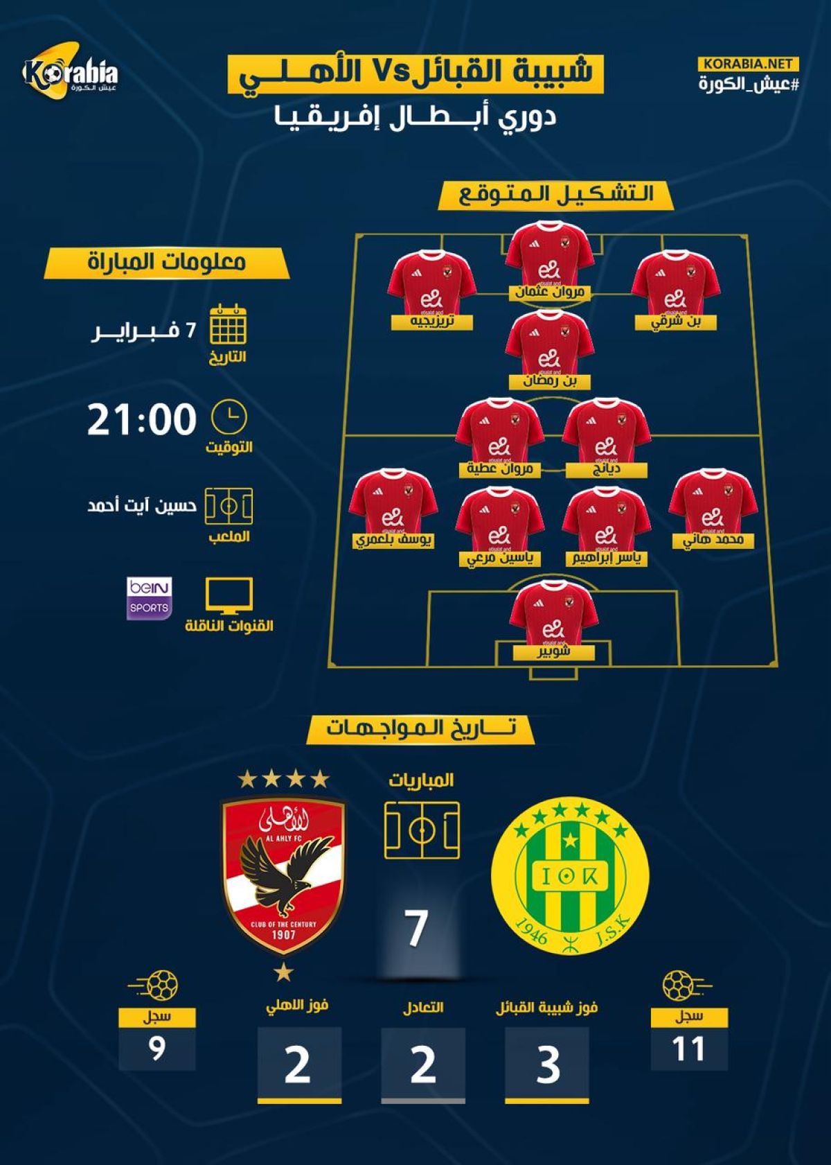 القنوات الناقلة لمباراة الأهلي وشبيبة القبائل