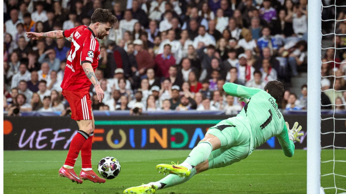 انتهت أحداث الشوط الأول بين ريال مدريد وبنفيكا، بالتعادل الإيجابي بهدف لكل فريق، ضمن منافسات عودة ملحق دور الـ16 من دوري أبطال أوروبا.